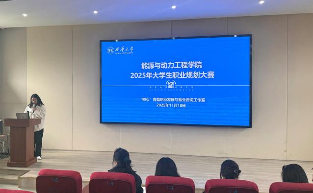 为增强大学生职业规划意识,引导学生树立正确的成才观、就业观,科学规划学业与职业发展,能源与动力工程学院依托“初心”青蓝职业发展与就业咨询工作室于11月18日在1B303会议室举办2025年大学生职业规划大赛-学院选拔赛。西华大学能源与动力工程学院党委副书记方晴、“初心”青蓝职业发展与就业咨询工作室指导老师及学院全体辅导员担任评委。